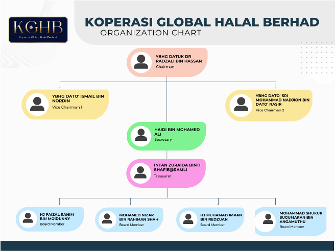 The leadership of Koperasi Global Halal Berhad (KGHB) divided into FOUR (4) main levels, designed to ensure accountability, good governance, and sustainable business growth.